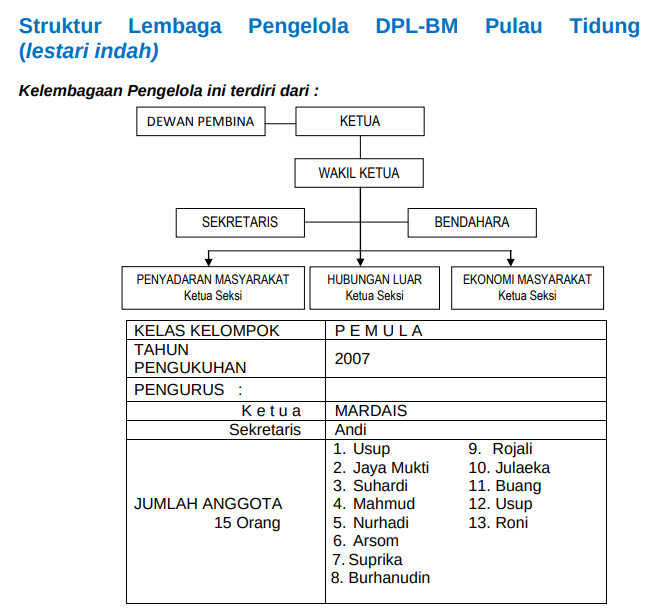 kelola oleh Masyarakat yaitu DPL Lestari Indah, dengan luas area 10 ha, terletak pada