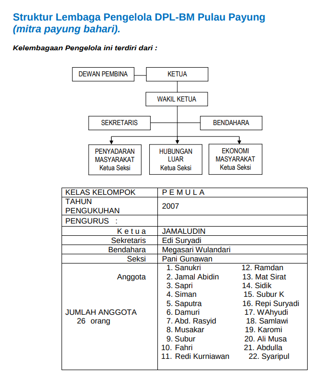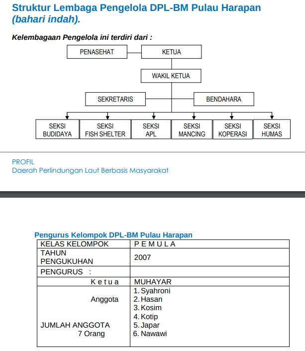 Kontak Person : DPL-BM Harapan ( Bahari Indah ) Nama : Muhayar Nomor Telepon : 08568327496