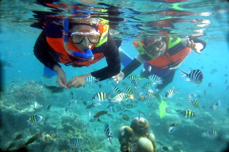 Kepulauan Seribu menawarkan beragam spot snorkeling yang memukau. Para wisatawan dapat menikmati keindahan bawah laut dengan melihat langsung kehidupan bawah laut tanpa harus menyelam. Spot snorkeling di Kepulauan Seribu memiliki terumbu karang yang indah dan beragam ikan warna-warni yang menjadi daya tarik utama bagi para penggemar snorkeling. Aktivitas snorkeling ini dilakukan dengan penuh kesadaran akan pentingnya menjaga ekosistem bawah laut agar keindahannya tetap abadi.