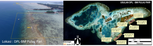 Di Pulau Pari telah berdiri Areal / Daerah Perlindungan Laut (APL/DPL) yang di kelola oleh Masyarakat yaitu DPL Pari Indah, dengan luas area 12 ha, terletak pada posisi 5º52’15,1"S 106º36'41,5"E - 5º52’12,4"S 106º36'45,8”E. Berdasarkan hasil analisa ahli, daerah potensial di sekitar Pulau Pari yaitu 6212 PU, panjang setiap sisi hexagon 40 m dengan luas masing-masing PU 0,4156 ha. Parameter BLM (Boundary Length Modifier) dalam analisis diberikan nilai 1 – 20, semakin tinggi BLM akan semakin mengelompok lokasi yang terpilih. Hasil analisis diperoleh daerah potensial cukup menyebar, untuk nilai BLM 20 ditemukan 4 lokasi utama yang potensial untuk dijadikan DPL-BM. Keempat lokasi yaitu di Selatan Pulau Pari, daerah Laguna di Selatan Pulau Tengah, Selatan Pulau Burung, dan daerah laguna Sebelah Barat Pulau Kongsi, ke 4 lokasi tersebut antara lain :