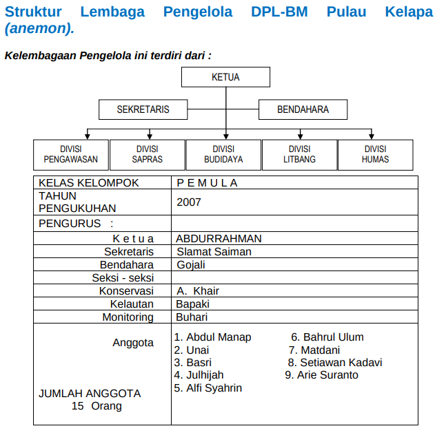Kontak Person : DPL-BM Pulau Kelapa ( Gurita Api ) Nama : ABD. RAHMAN Nomor Telepon : 085921258542