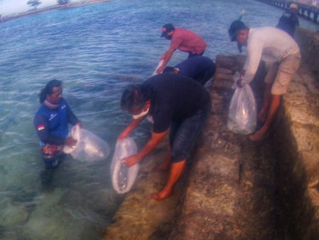 Restocking ikan adalah kegiatan mengembalikan atau menambah jumlah populasi ikan di perairan yang mengalami penurunan jumlah ikan. Di Kepulauan Seribu, upaya restocking ikan dilakukan untuk mendukung keberlanjutan perikanan dan menjaga keseimbangan ekosistem laut. Melalui restocking ikan, spesies ikan yang terancam punah atau populasinya menurun dapat dipulihkan, sehingga keanekaragaman hayati laut tetap terjaga dan sumber daya ikan dapat dimanfaatkan secara bertanggung jawab.